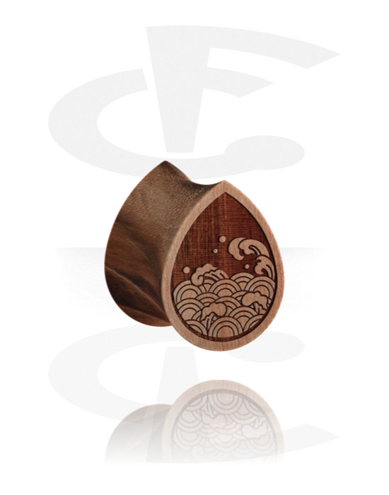 Plug s rozšírenými koncami v tvare slzy (drevo) s laserovým gravírovaním „vodné vlny“
