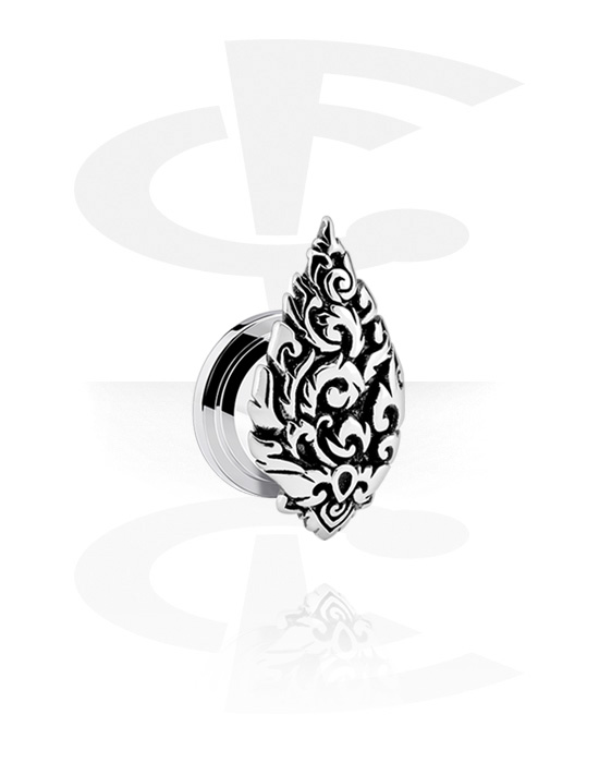Skrutkovací tunel (chirurgická oceľ, strieborná, lesklý povrch) s vintage dizajnom