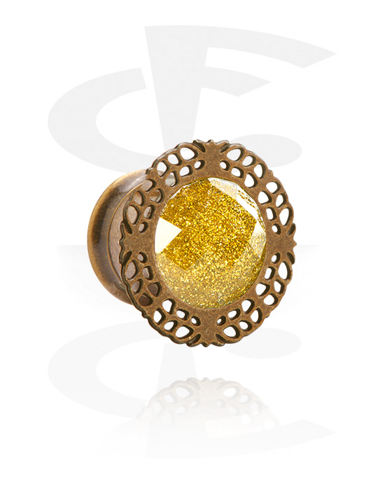 Tunel s rozšírenými koncami (chirurgická oceľ, antická zlatá) s viečkom v rôznych farbách a trblietanie