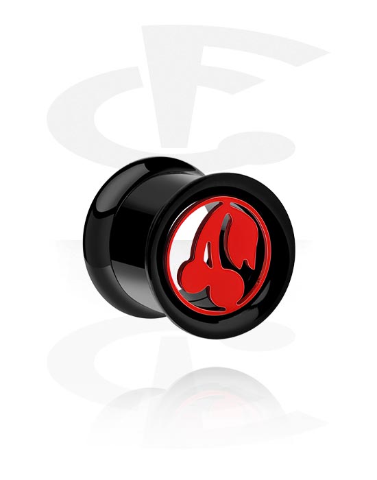 Tunel s rozšírenými koncami (chirurgická oceľ, čierna, lesklý povrch) s Motív čerešňa