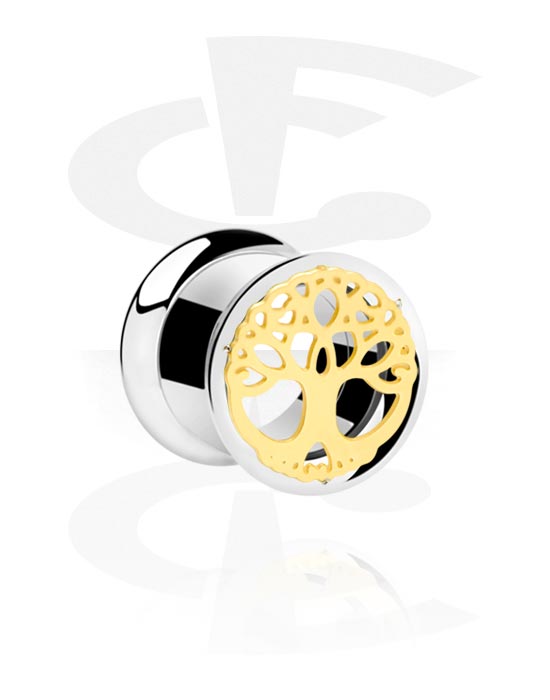 Tunel s rozšírenými koncami (chirurgická oceľ, strieborná, lesklý povrch) s Motív strom