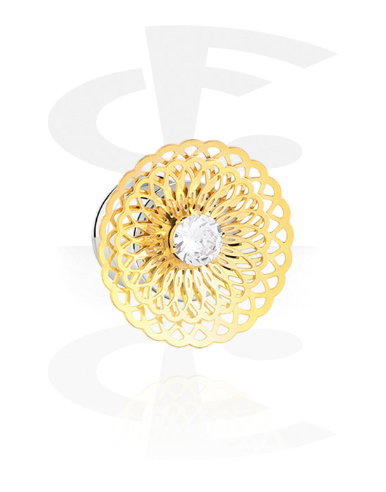 Plug s rozšírenými koncami (chirurgická oceľ, strieborná, lesklý povrch) s koncovkou mandala a Kryštálový kameň