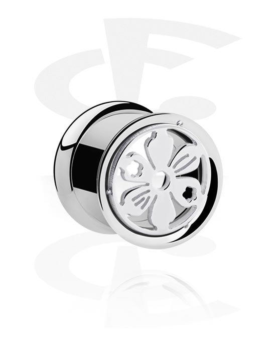 Tunel s rozšírenými koncami (chirurgická oceľ, strieborná, lesklý povrch) s dizajnom kvetina