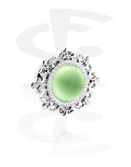 Skrutkovací tunel (chirurgická oceľ, strieborná, lesklý povrch) s viečkom v rôznych farbách a kryštálové kamene