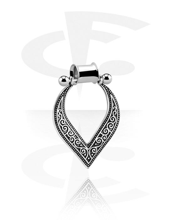 Tunel s rozšírenými koncami (chirurgická oceľ, strieborná, lesklý povrch) s kreolou s ornamentom