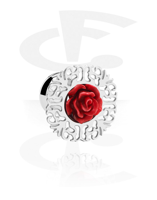 Tunel s rozšírenými koncami (chirurgická oceľ, strieborná, lesklý povrch) s motív ruže