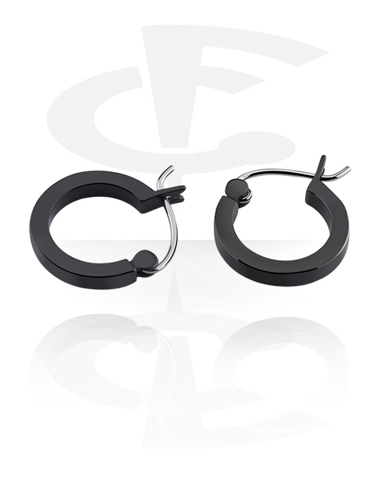 Elegantni črni uhani, izdelani iz kirurškega jekla. Nevpadljiv modni dodatek za vsako priložnost.