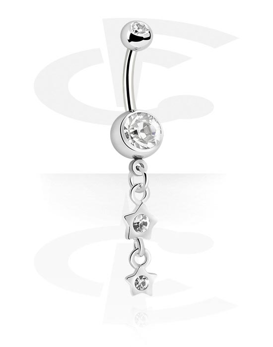 Rinka za popek (kirurško jeklo, srebrna, sijoč zaključek) s/z Obesek in Kristalni kamni