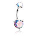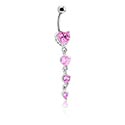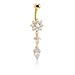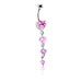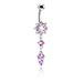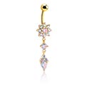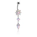 Rinka za popek (kirurško jeklo, srebrna, sijoč zaključek) s/z obeskom rože in Kristalni kamni