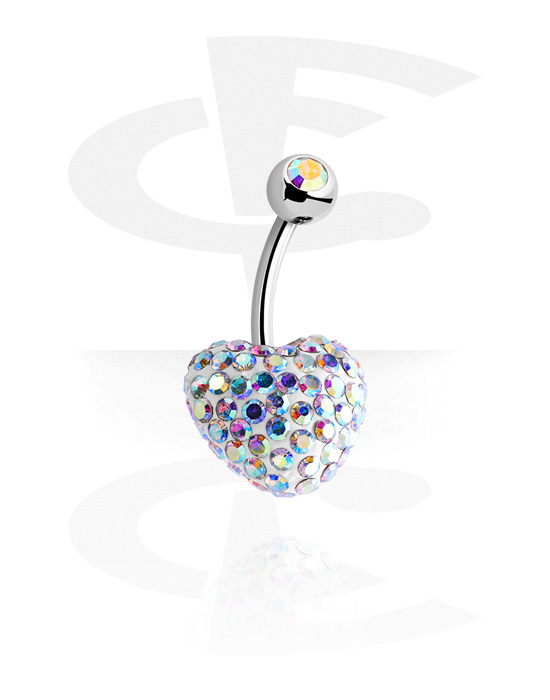 Rinka za popek (kirurško jeklo, srebrna, sijoč zaključek) s/z Dizajn srce in Kristalni kamni