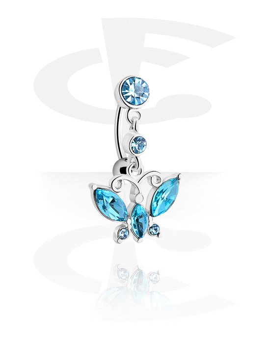 Rinka za popek (kirurško jeklo, srebrna, sijoč zaključek) s/z Obesek metulj in Kristalni kamni