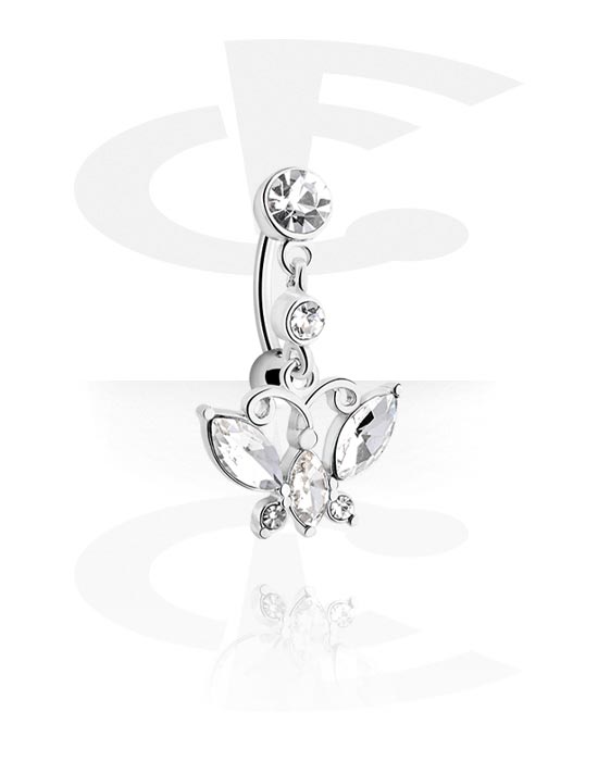 Rinka za popek (kirurško jeklo, srebrna, sijoč zaključek) s/z Obesek metulj in Kristalni kamni