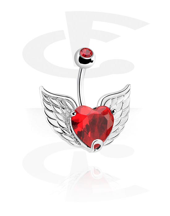 Rinka za popek (kirurško jeklo, srebrna, sijoč zaključek) s/z Dizajn srce in Kristalni kamni