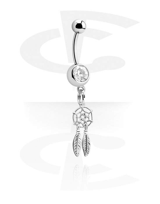 Rinka za popek (kirurško jeklo, srebrna, sijoč zaključek) s/z obeskom lovca sanj in Kristalni kamen