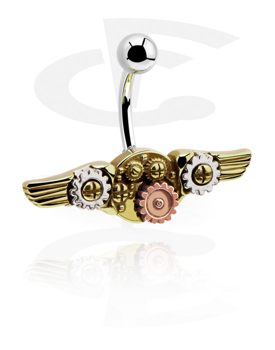 Rinka za popek (kirurško jeklo, srebrna, sijoč zaključek) s/z Dizajn steampunk
