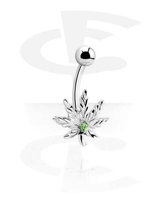 Rinka za popek (kirurško jeklo, srebrna, sijoč zaključek) s/z listom marihuane in Kristalni kamen