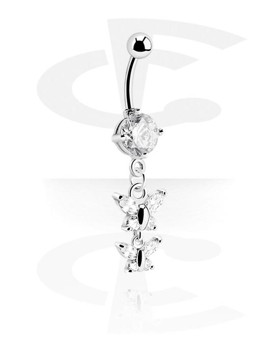 Rinka za popek (kirurško jeklo, srebrna, sijoč zaključek) s/z Obesek metulj in Kristalni kamni