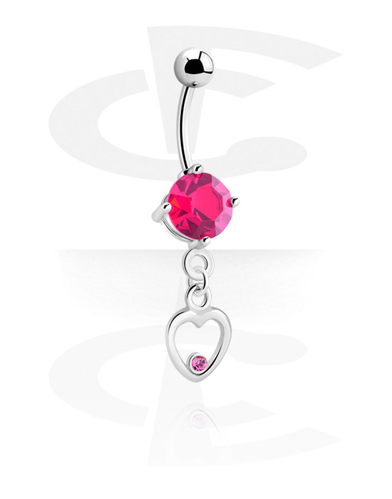 Rinka za popek (kirurško jeklo, srebrna, sijoč zaključek) s/z obesek srce in Kristalni kamni