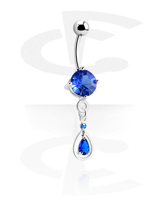 Rinka za popek (kirurško jeklo, srebrna, sijoč zaključek) s/z Obesek in Kristalni kamni