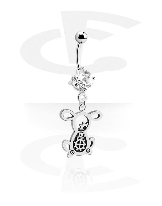 Rinka za popek (kirurško jeklo, srebrna, sijoč zaključek) s/z Dizajn steampunk in Kristalni kamen
