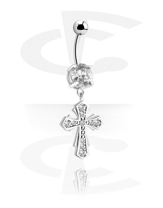 Rinka za popek (kirurško jeklo, srebrna, sijoč zaključek) s/z Obesek križ in Kristalni kamni