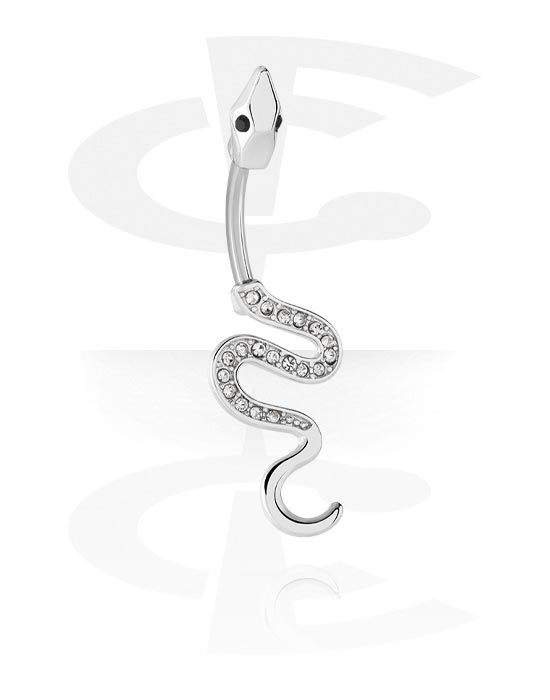 Rinka za popek (kirurško jeklo, srebrna, sijoč zaključek) s/z kačjim dizajnom in Kristalni kamni