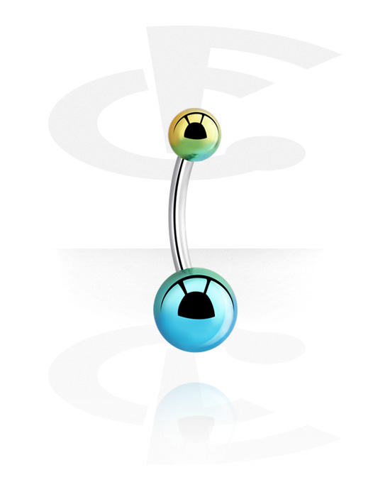 Rinka za popek (kirurško jeklo, srebrna, sijoč zaključek) s/z anodiziranimi bunkicami