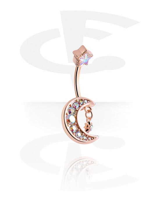 Rinka za popek (kirurško jeklo, rožnatozlata, sijoč zaključek) s/z Viseči obesek polmesec in Kristalni kamni