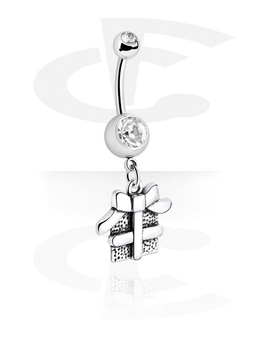 Rinka za popek (kirurško jeklo, srebrna, sijoč zaključek) s/z Božični dizajn in Kristalni kamen