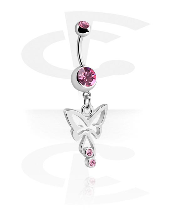 Rinka za popek (kirurško jeklo, srebrna, sijoč zaključek) s/z Obesek metulj in Kristalni kamni
