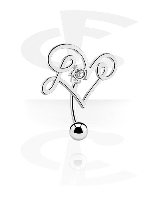 Rinka za popek (kirurško jeklo, srebrna, sijoč zaključek) s/z Dizajn srce in Kristalni kamen