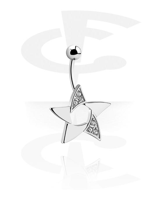 Rinka za popek (kirurško jeklo, srebrna, sijoč zaključek) s/z Dizajn zvezda in Kristalni kamni