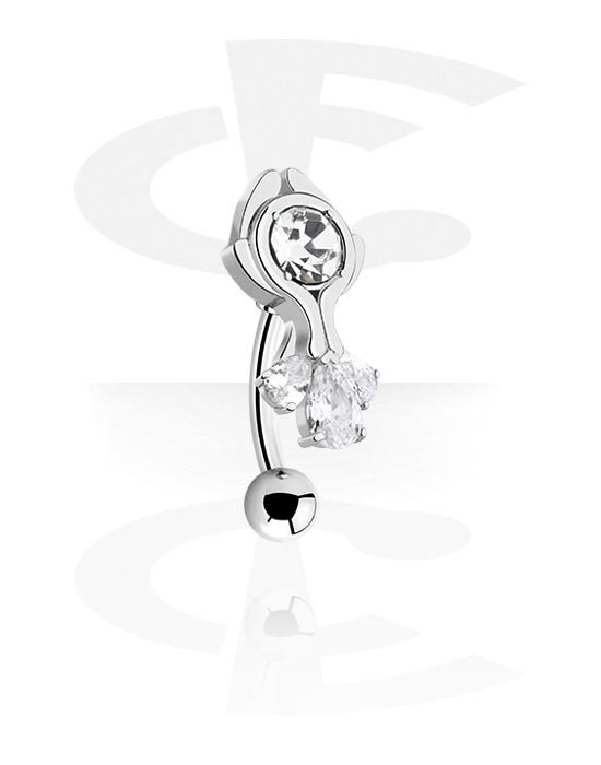 Rinka za popek (kirurško jeklo, srebrna, sijoč zaključek) s/z Kristalni kamni