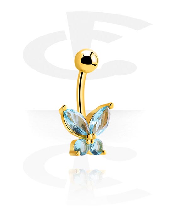 Rinka za popek (kirurško jeklo, zlata, sijoč zaključek) s/z Dizajn metulj in Kristalni kamni