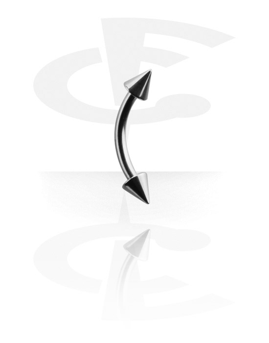 1.2 mm curved barbell with little pointed cones. Made of surgical steel and available in different lengths.