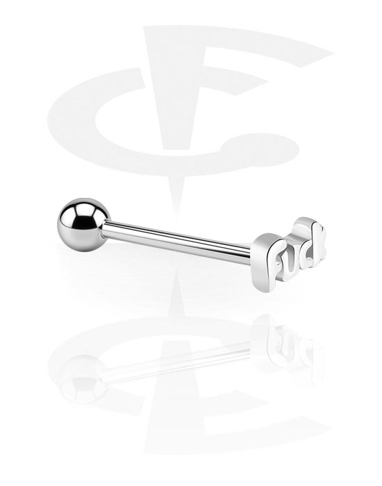 Zakaj bi se zadrževali? Predrzen barbel z napisom »Fuck«, za vse tiste, ki radi povedo svoje mnenje. Zabaven dizajn za vaš piercing v jeziku ali ušesu.