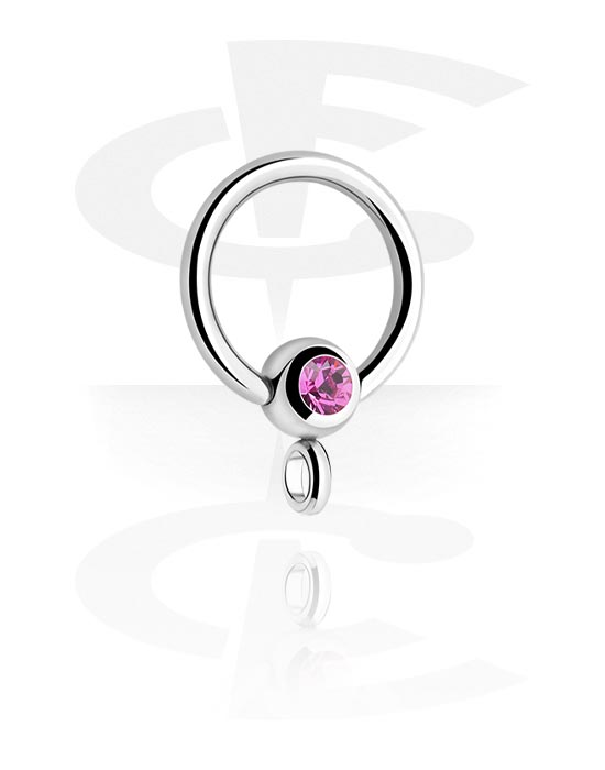 Obroček z bunkico (kirurško jeklo, srebrn, sijoč zaključek) s/z Kristalni kamen in obročem za nastavke