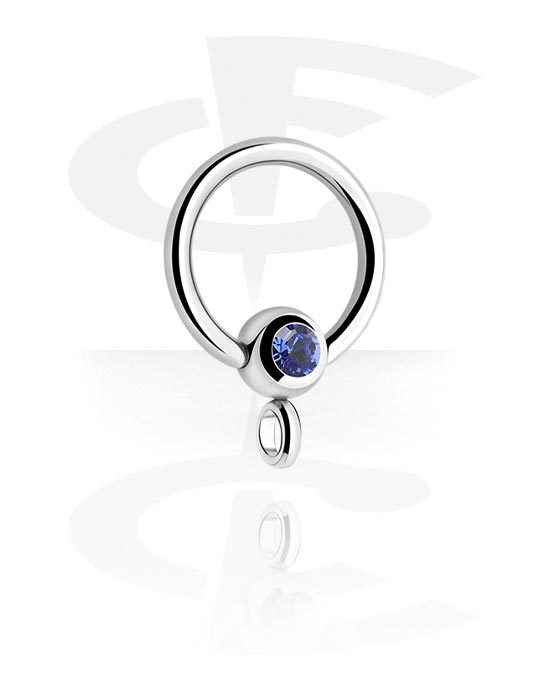 Obroček z bunkico (kirurško jeklo, srebrn, sijoč zaključek) s/z Kristalni kamen in obročem za nastavke
