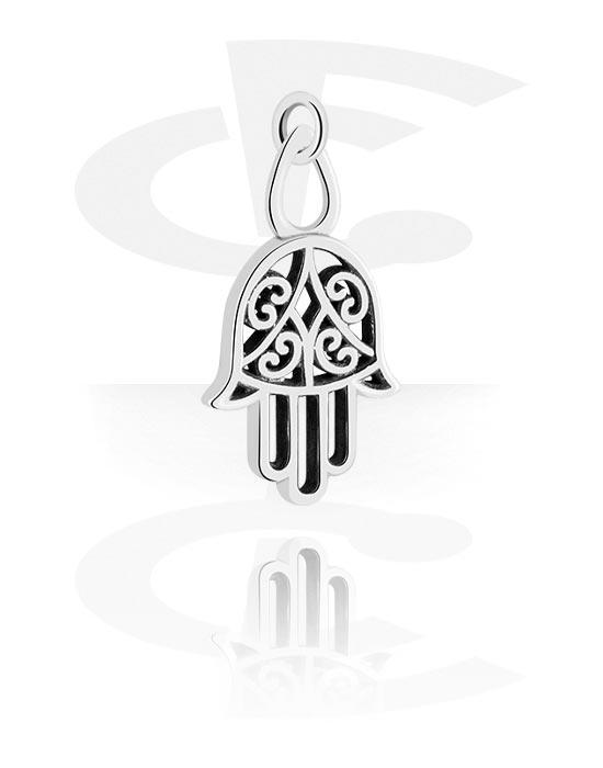 Obesek za zapestnico (kirurško jeklo, srebrn, sijoč zaključek) s/z dizajnom roke Fatime