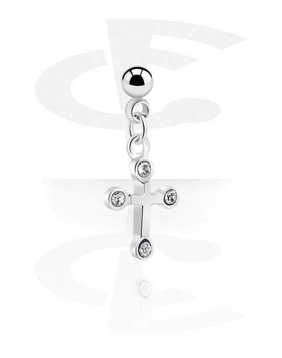 Kroglica za 1,2-mm palčke z navojem (kirurško jeklo, srebrna, sijoč zaključek) s/z dizajn križ in Kristalni kamni