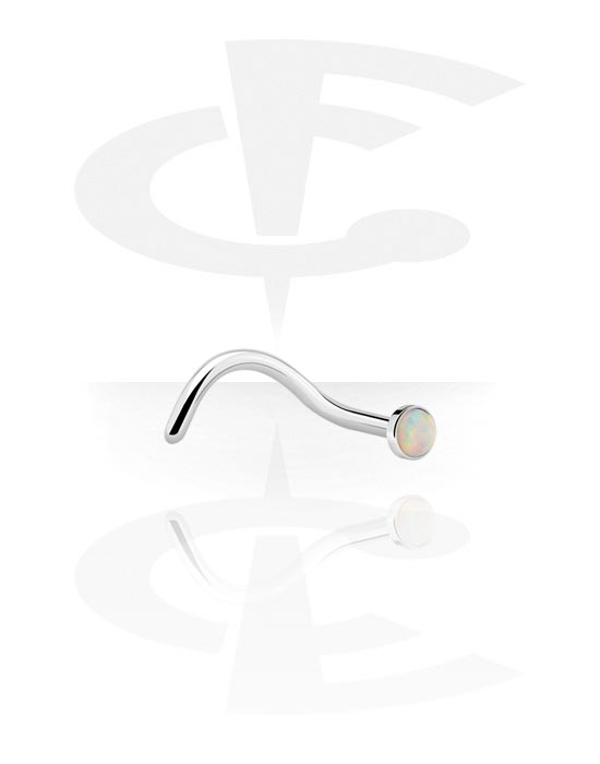 Ukrivljeni uhanček za nos (kirurško jeklo, srebrn, sijoč zaključek) s/z Umetni opal