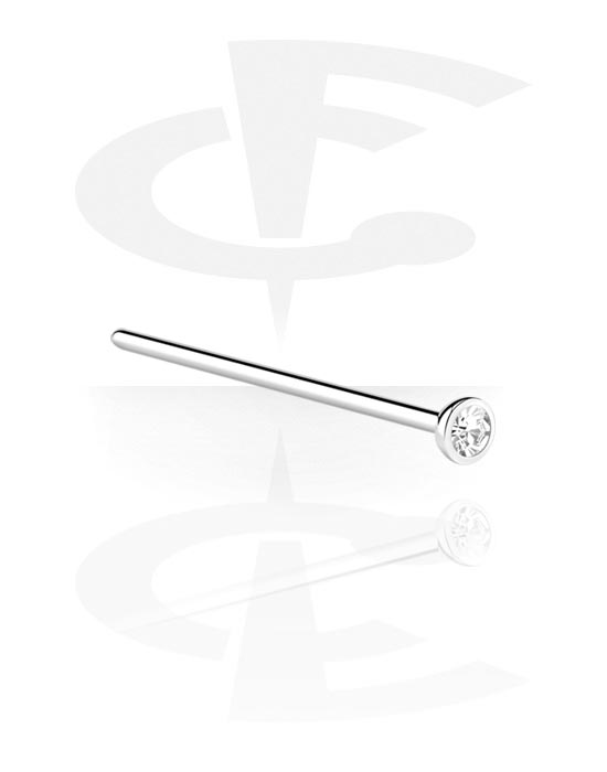 Ravni uhanček za nos (kirurško jeklo, srebrn, sijoč zaključek) s/z Kristalni kamen
