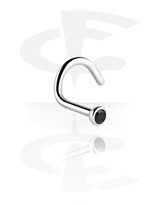 Ukrivljeni uhanček za nos (kirurško jeklo, srebrn, sijoč zaključek) s/z Kristalni kamen