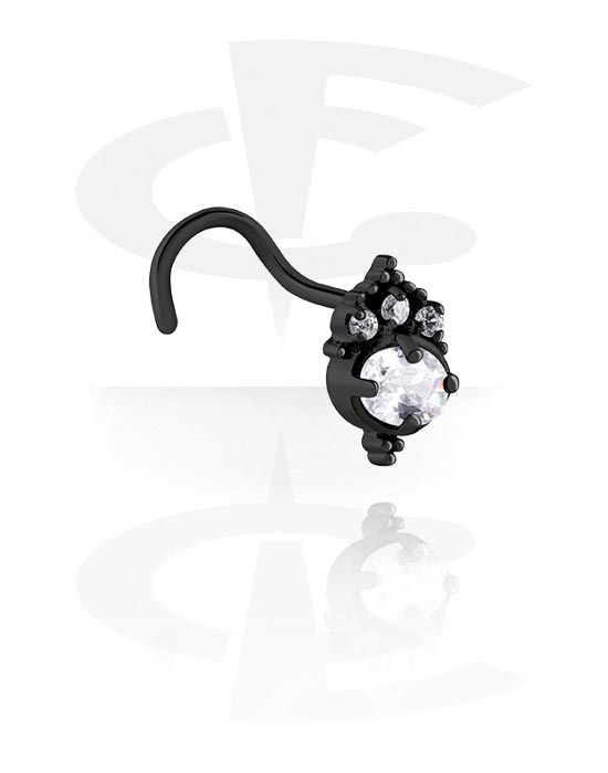 Ukrivljeni uhanček za nos (kirurško jeklo, črn, sijoč zaključek) s/z Kristalni kamni