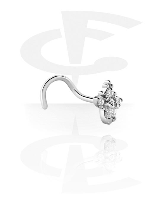 Ukrivljeni uhanček za nos (kirurško jeklo, srebrn, sijoč zaključek) s/z Kristalni kamni