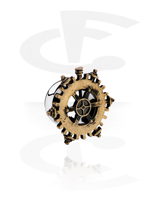 Tunel z dvojnim robom (kirurško jeklo, srebrn, sijoč zaključek) s/z nastavkom steampunk