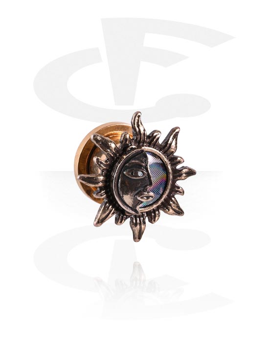 Navojni tunel (kirurško jeklo, zlat, sijoč zaključek) s/z dizajnom starinskega sonca