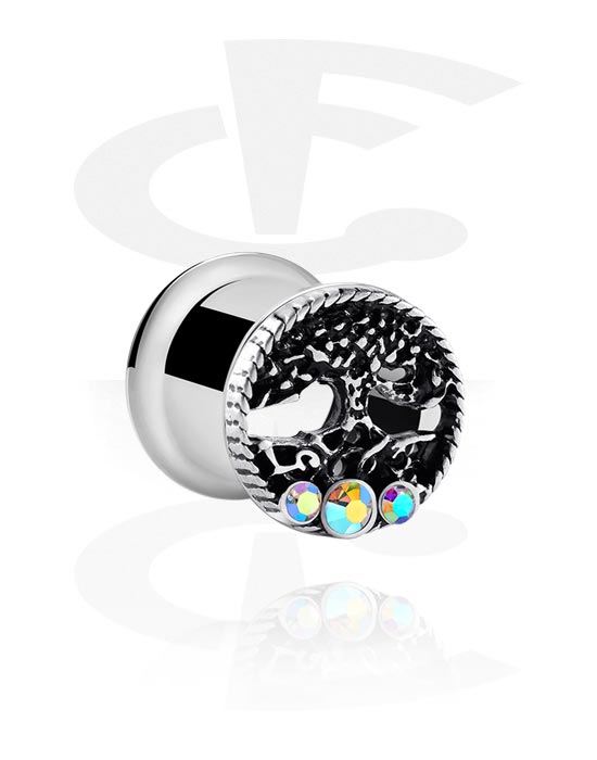 Tunel z dvojnim robom (kirurško jeklo, srebrn, sijoč zaključek) s/z Dizajn drevo in Kristalni kamni