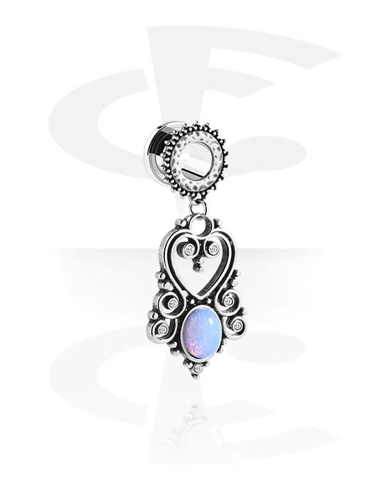Navojni tunel (kirurško jeklo, srebrn, sijoč zaključek) s/z vintage dizajnom in obesek srce