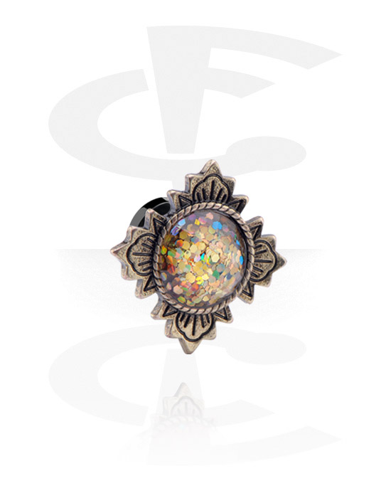Navojni tunel (kirurško jeklo, črn, sijoč zaključek) s/z vintage dizajnom in bleščice